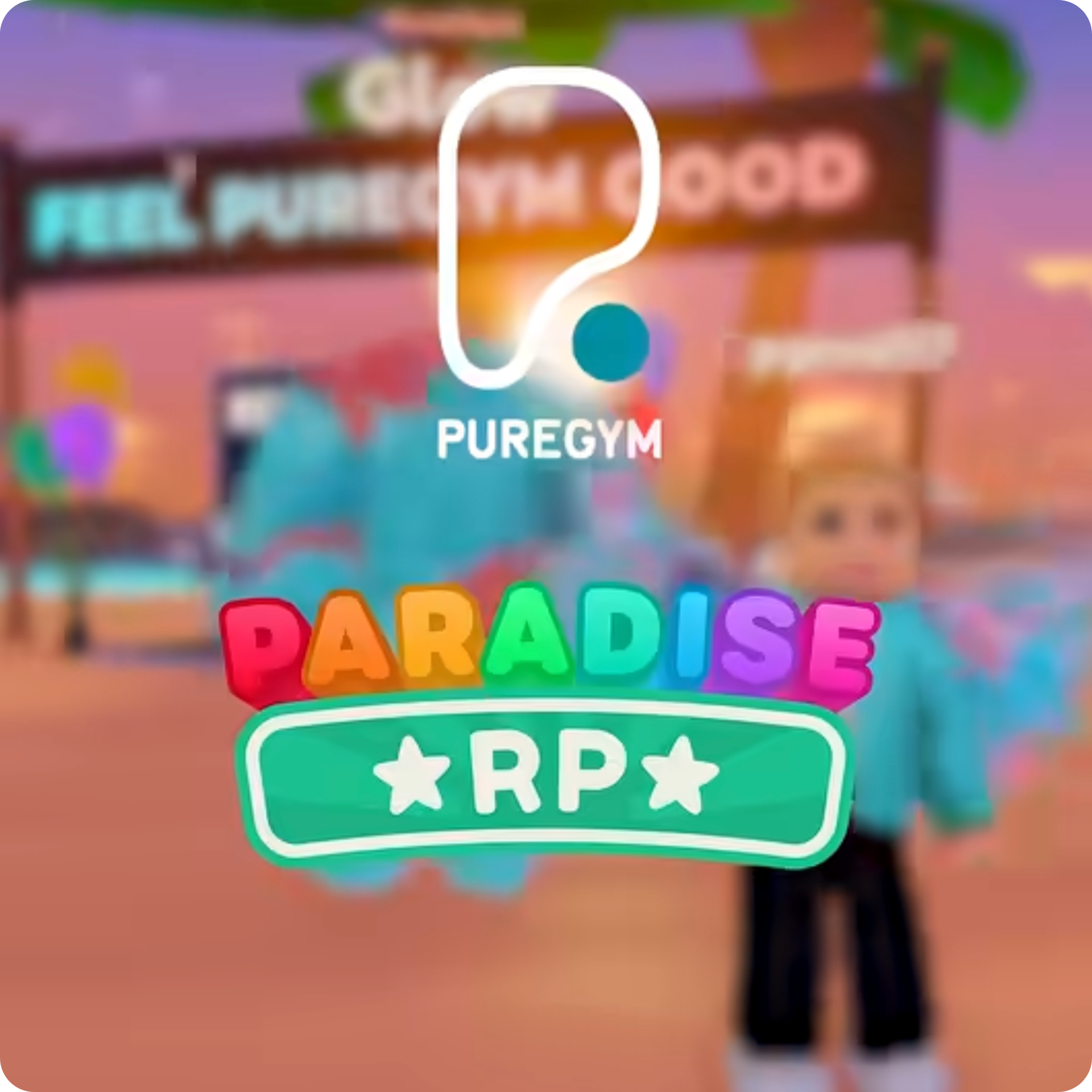 PureGym integrated into Paradise RP, a popular Roblox role-playing experience where players explore a tropical town, complete missions, and interact socially.